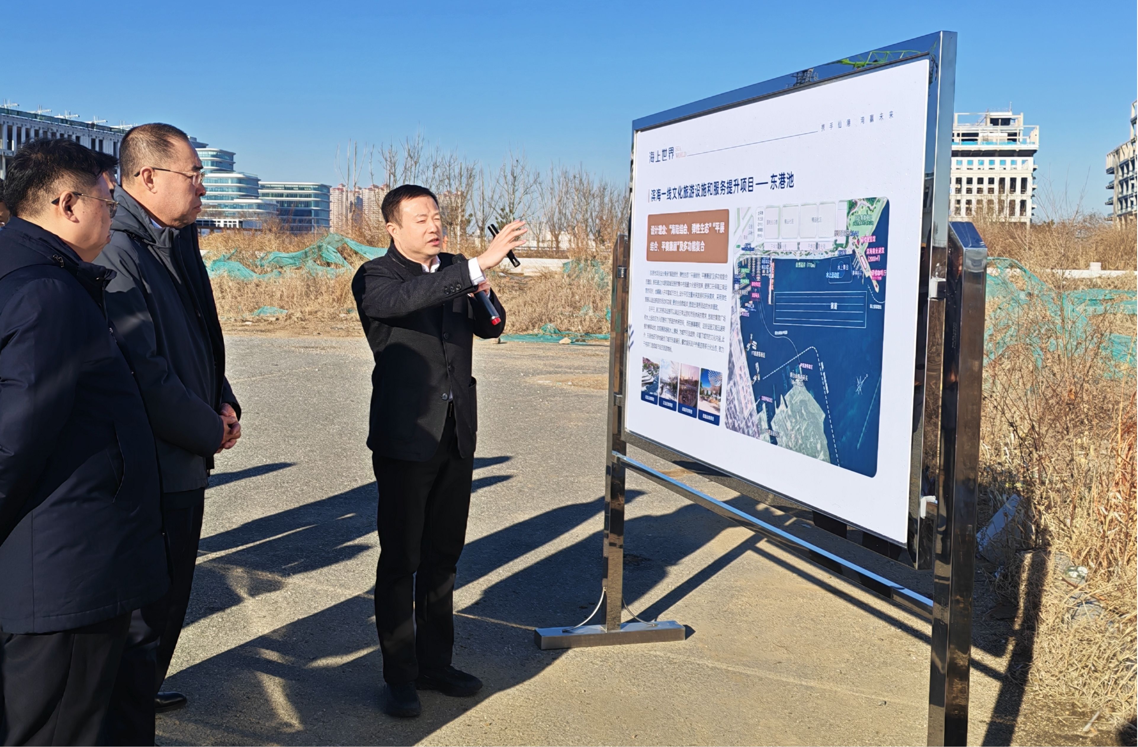為貫徹落實(shí)2025年市政府工作報(bào)告中關(guān)于建成海上世界金融創(chuàng)新試驗(yàn)區(qū)等重點(diǎn)工作任務(wù),1月17日上午,市政府副秘書長、夾河·幸福新城指揮部副指揮長王軍濤、藍(lán)天集團(tuán)董事長張兵共同到海上世界調(diào)研項(xiàng)目進(jìn)展情況,走進(jìn)夾河·幸福新城開展觀摩交流。集團(tuán)公司副總經(jīng)理張虹、王冬青、陳光,高級(jí)總監(jiān)閆京榮、劉杰以及文旅集團(tuán)董事長田大中、城投集團(tuán)董事長張傳強(qiáng)等參加活動(dòng)。